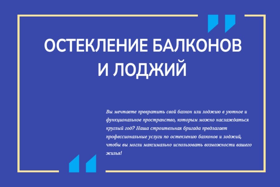 Не упустите возможность сделать ваш балкон или лоджию комфортным и стильным пространством. Обратитесь к нам уже сегодня, и мы поможем вам осуществить ваши мечты!